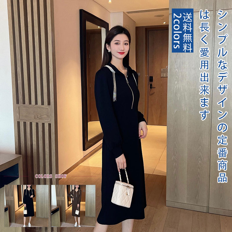 ワンピース 長袖 ロングワンピース トレーナーワンピース レディース 春秋 ハーフジッパー 大きいサイズ 体型カバー きれいめ おしゃれ 無地