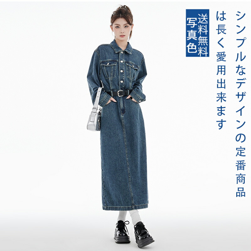 デニムワンピース シャツワンピース ロングワンピース ロング デニムスカートレディースファッション ワンピース