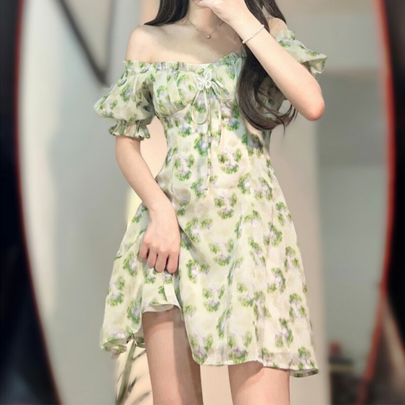 ワンピース 花柄 膝丈 ひざ丈 半袖 フリル 肩出し 肩だし オフショル おしゃれ きれいめ 大人 上品 タイト セクシー セクシーワンピース タイトワンピース タイトドレス