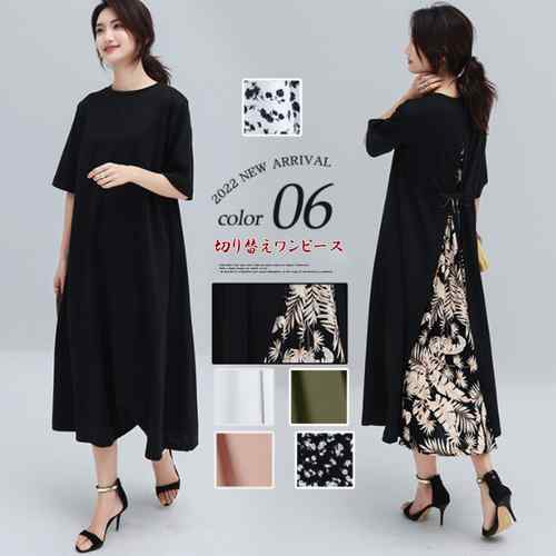 ~4 ロング丈ワンピース 半袖 綿 ナチュラル 大人可愛い 体型カバー 薄手レディースファッション ワンピース