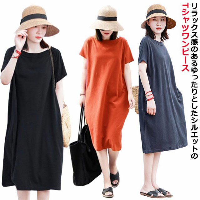 Tシャツワンピースレディース レディース Tシャツワンピース ティーシャツワンピース ワンピース ロング丈tシャツ ロンT ワンピ 半袖 クルーネック ミモレ丈 Tシャツ ロング丈