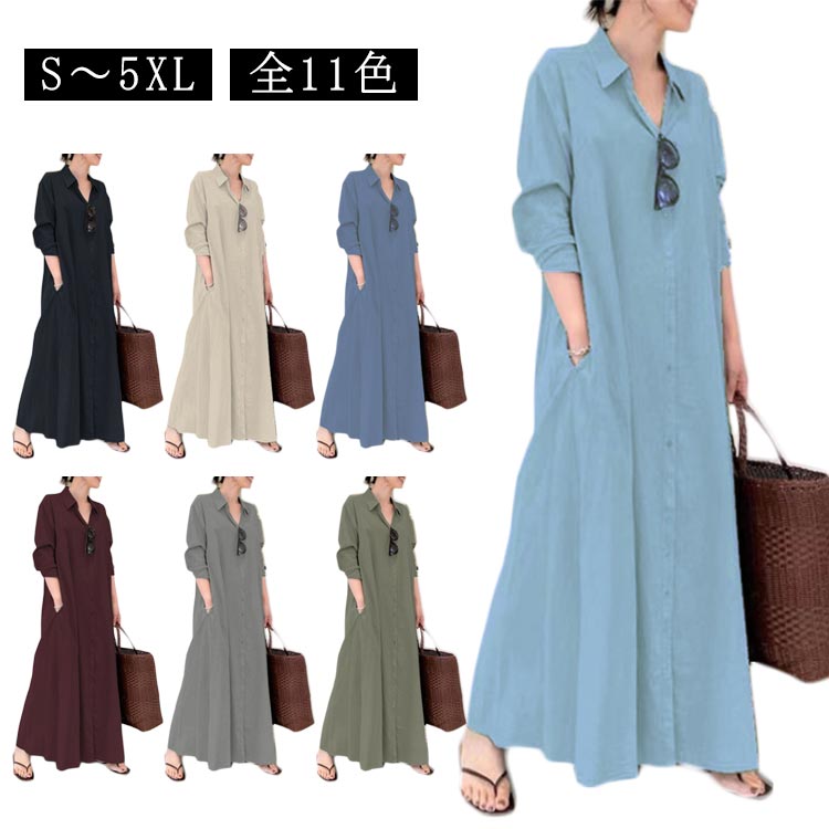 シャツ ワンピース 長袖 シャツワンピース ロング