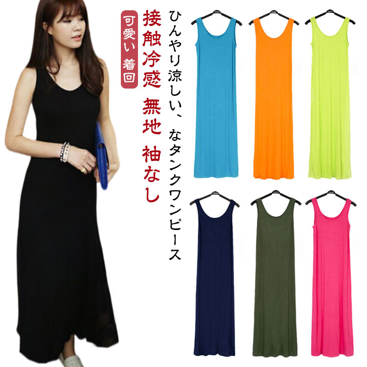 M L XL ロングワンピース ロングワンピース 接触冷感 部屋着 無地 タンクワンピレディースファッション ワンピース