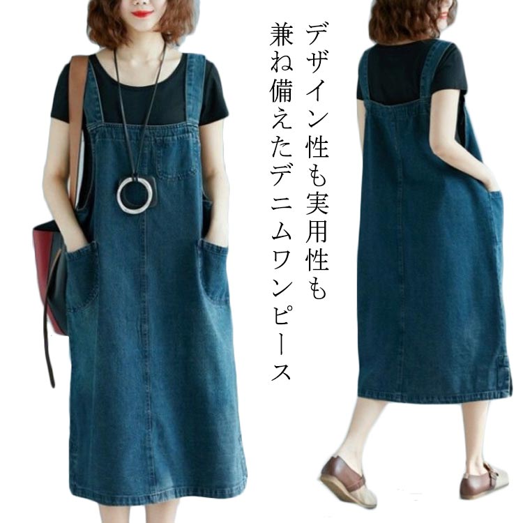 M~2XL 体型カバー ジャンパースカート ポケット付き 重ね着 ジャンパースカートレディースファッション ワンピース