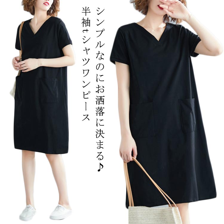 tシャツワンピース S~3XL Vネック 膝上丈 半袖 夏服 膝上丈レディースファッション ワンピース