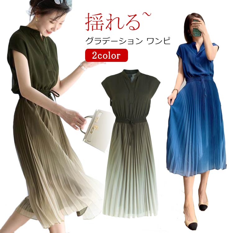 ワンピース プリーツ グラデーション 半袖 レディース セクシー ネック シャツワンピース きれいめ 膝丈