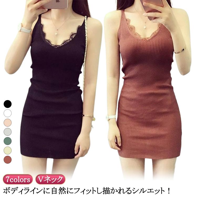 リブ編み ニット ロングキャミソールワンピース ロング キャミソールワンピース ロングワンピース ニット キャミソールワン タイトワンピース ロングキャミソール