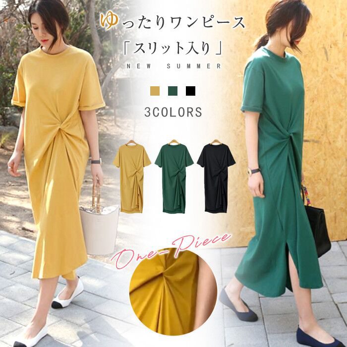 ワンピース レディース 夏ワンピース マキシワンピース 薄手 半袖 アシンメトリー ロングワンピース スリット ゆったり