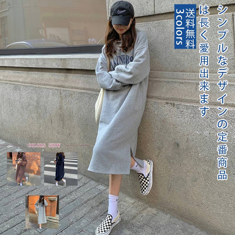 大きサイズトレーナー レディースワンピース 長袖 フレア ミモレ丈 膝下丈レディースファッション ワンピース