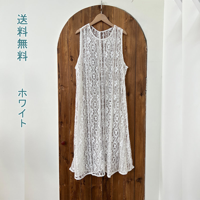 ロングワンピース レディース ワンピース ラインワンピース アウター 春 レース ノースリーブ ロング丈 大きいサイズ ゆったり 華奢見え ふんわり カジュアル 体型カバー お出かけ 通勤 通学 春
