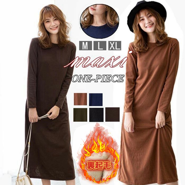 ルームウェア ワンピース マキシワンピ 裏起毛タイプ追加 レディース 裏起毛 防寒 暖かい 無地 長袖 ワンピース ロングワンピース フレア 秋 サイズ展開 秋 冬