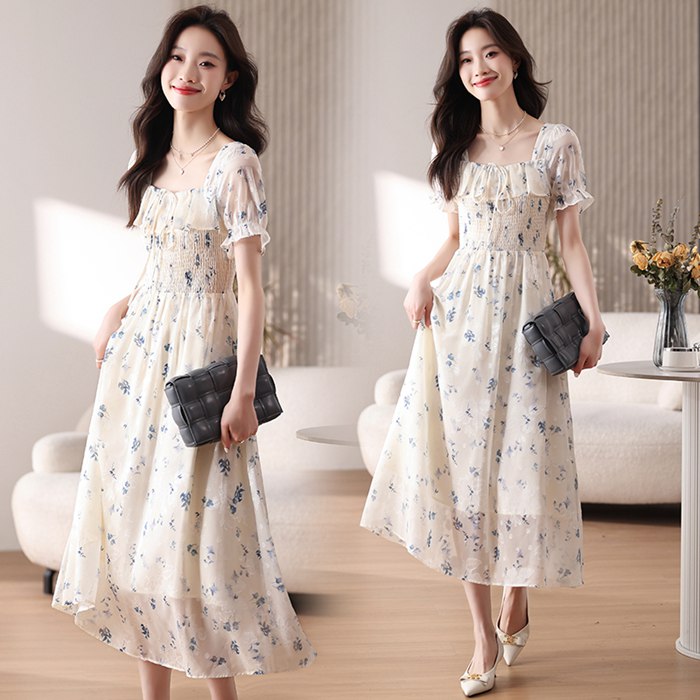 レディース ワンピース ドレス シフォンワンピース 夏ワンピース 半袖リゾートワンピース 海外 旅行 海 春夏 エレガント ファッション 花柄 デート パーティー 演奏会 通勤 日常服