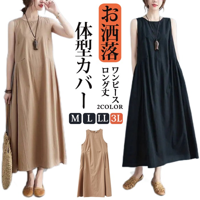 ワンピース ノースリーブワンピース きれいめ ロング レディース 体型カバー 50代 40代 30代 20代 お洒落 可愛い ファッション