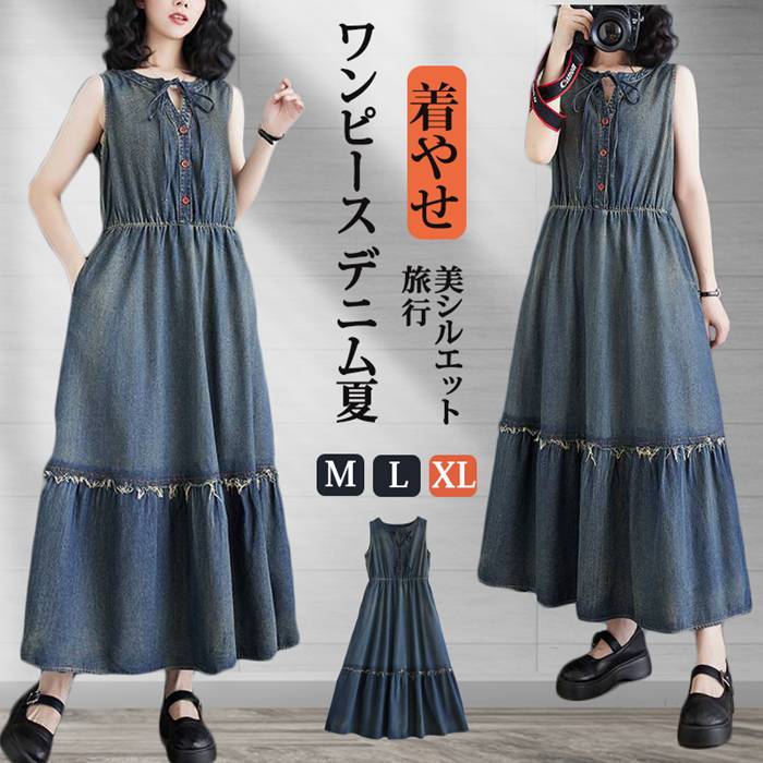 ワンピース デニム 夏 レディース ロング デニムワンピース 旅行 シンプル 美シルエット 着やせ かわいい 通勤 通学 カジュアル