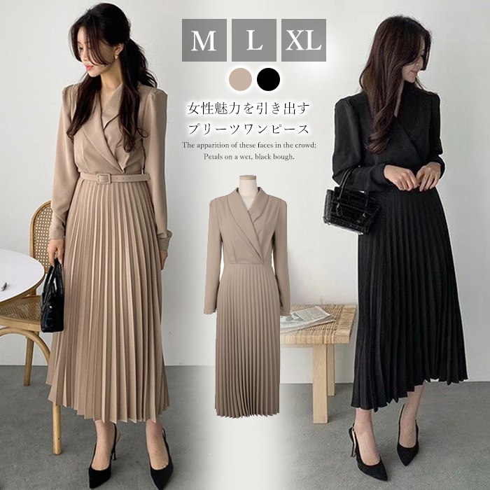 ワンピース レディース プリーツワンピース 長袖 スーツ プリーツ ドレス 春 夏 秋 ワンピーススーツ ロングワンピース きれいめ 上品 エレガント 通勤 入学式 入園式
