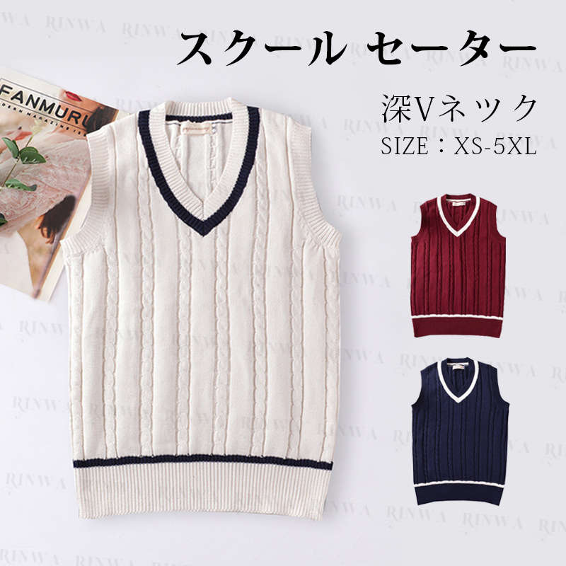 入学式スーツ定番のセーター 無地 スクールカーディガン スクール カーディガンニットベスト 春 ニットソー ニット生地 リブ Vネック