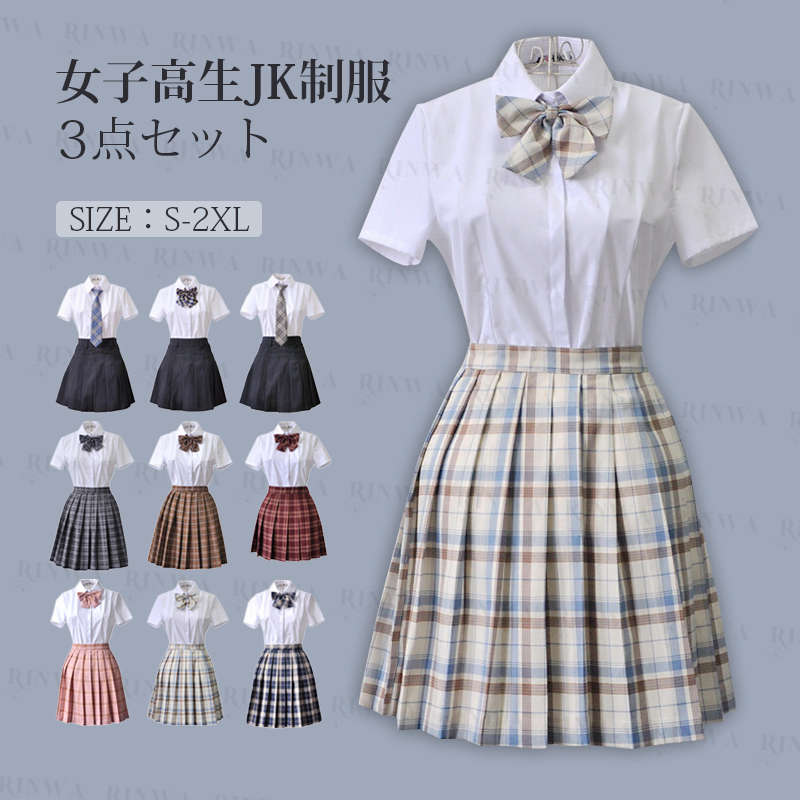 学生制服 セットアップ スカート シャツ 蝶結び付き チェック柄 プリーツスカート レディース 高校生