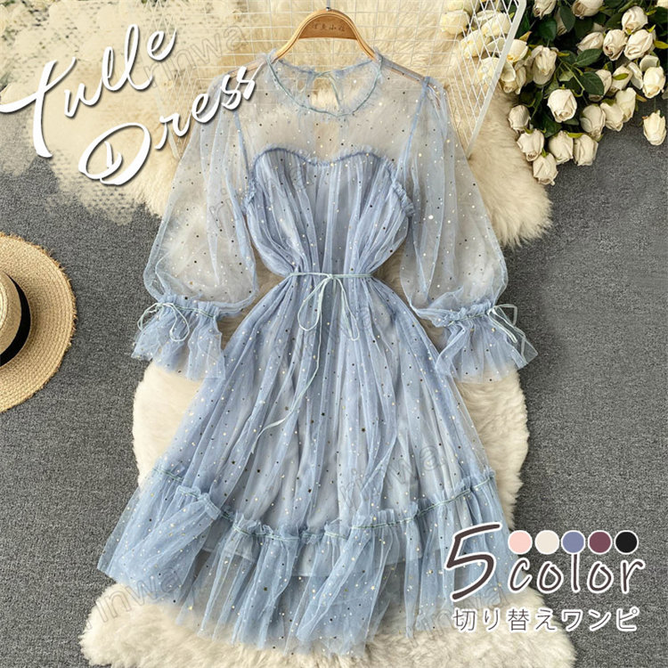透け感のあるワンピース キラキラ パーテイードレス デートドレス 誕生日 贈り物 プレゼントレディースファッション ワンピース