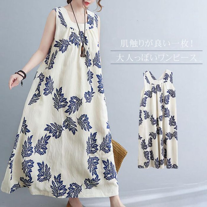 ワンピース ロングワンピース レディース 花柄 ワンピース 綿麻 マキシ丈レディースファッション ワンピース