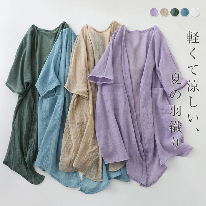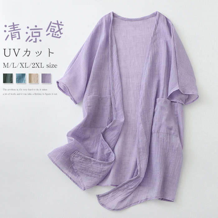 全4色 暑い季節に使い回し ロング丈 リネンカーディガン パーブル ベージュ グリーン ブルー 大きいサイズ 春夏 カット 日焼け止め プレゼント 贈り物 ギフト 母の日 ♪
