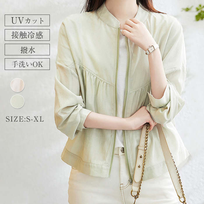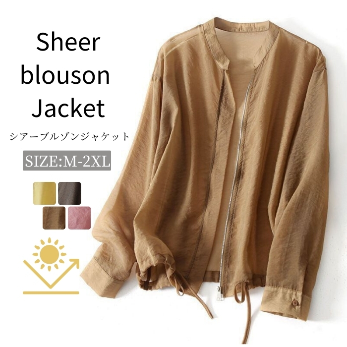 ライトアウター 羽織 冷房対策 カジュアル シアー ブルゾン 春 夏 ノーカラー 薄手 ショート MA1ブルゾン