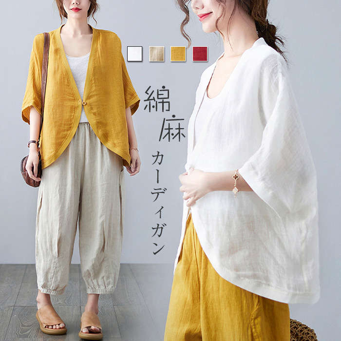 綿麻 シャツブラウス ナチュラルで可愛い 涼しい 羽織り ボレロ カーディガン 日焼けレディースファッション トップス カーディガン ボレロ