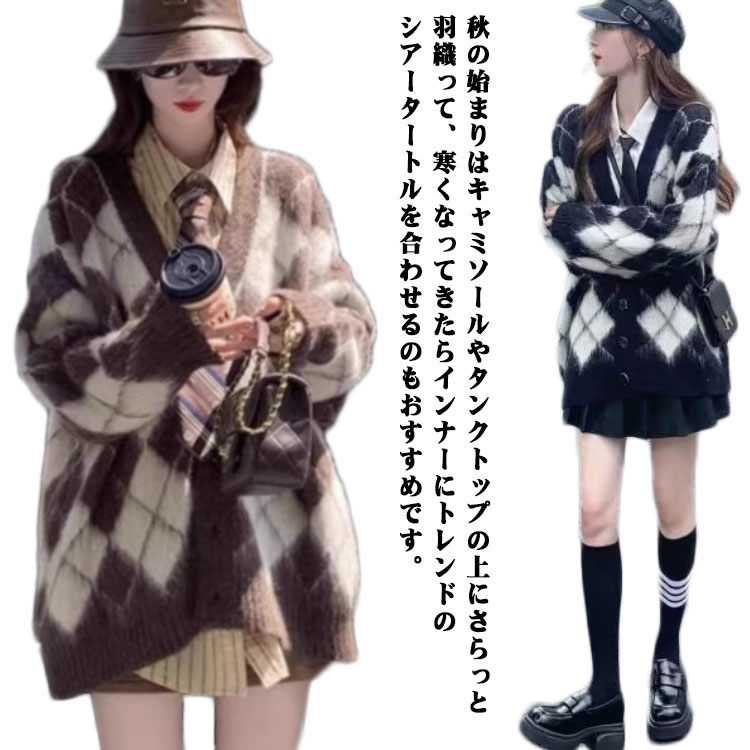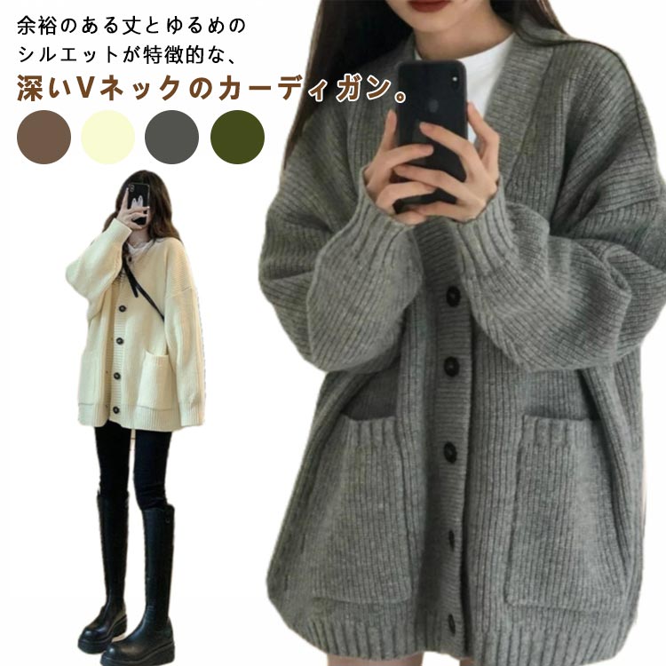 前開き トップス セーター 長袖 ニットカーディガン Vネック お洒落 ビッグシルエット女性 可愛い ニットカーディガン ボタン付き