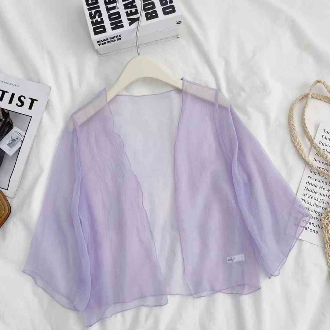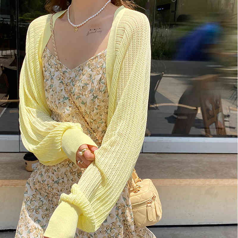 ワンピ専用 ボレロ 冷感 シアーカーディガン メッシュ パフ袖 レディース 夏 薄手 サマーニットカーディガン カット 冷房対策