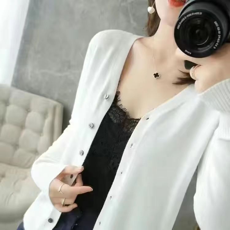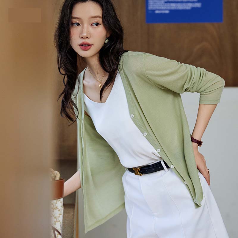 カーディガン サマーニット 紫外線対策 涼しい 薄手 軽く ニット Vネック シェルボタン 長袖 トップス カジュアル 冷房対策 着回し 無地