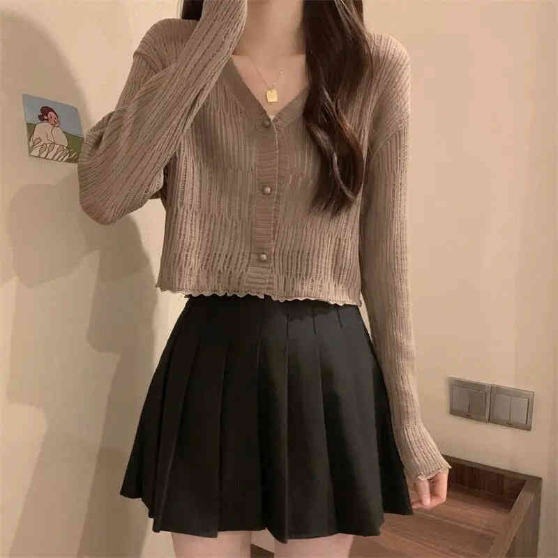 カーディガン レディース 夏 トップス 長袖 羽織り サマーニットカーディガン ニット ネック ショート丈 カット 薄手 無地 春秋 カジュアル