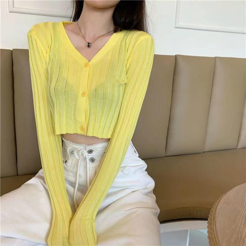 カーディガン レディース 夏 トップス 長袖 羽織り サマーニットカーディガン ニット Vネック ショート丈 UVカット 薄手 無地 春秋 カジュアル