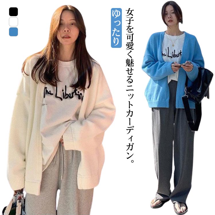羽織り ニット 長袖 ゆったり アウター トップス ルーズカーデ レディース ルーズシルエット カーディガン 体型カバー 春 ナチュラル キレイめ カジュアル シンプル 大人 可愛い 秋 着痩せ おし