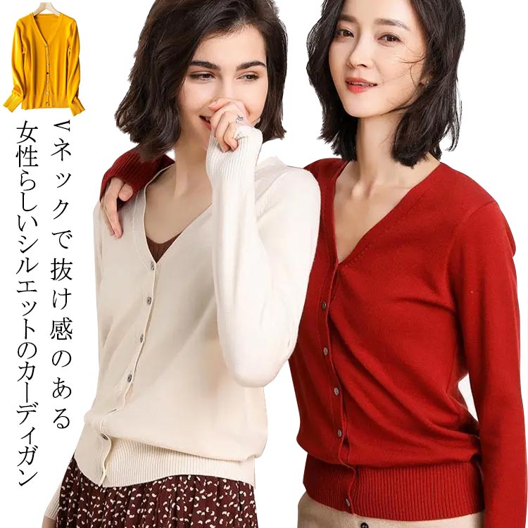 カーディガン ニットカーディガン レディース 羽織り 長袖 Vネック トップス ニットセーター 秋服 カジュアル セーター コート 薄手 着痩せ 通勤