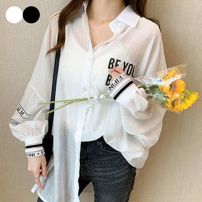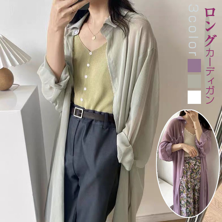 アウターシャツカーディガンロゴロング対策 紫外線対策 カット 羽織 長袖 涼しい 日焼け薄手大きめゆったり冷房対策透け夏レディース