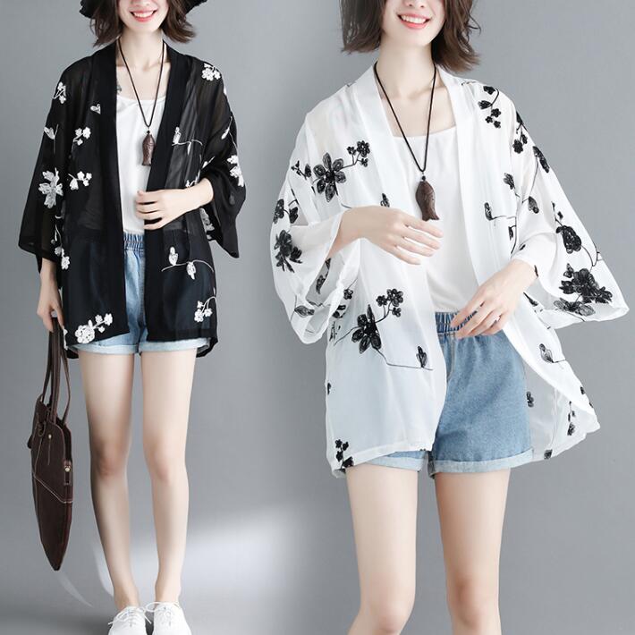 刺繍カーディガンライトアウター花柄コーディガンロングカーディガン 長袖9分袖カーディガン 体型カバ 涼しい薄地冷房対策 紫外線対策大きめゆったり透け