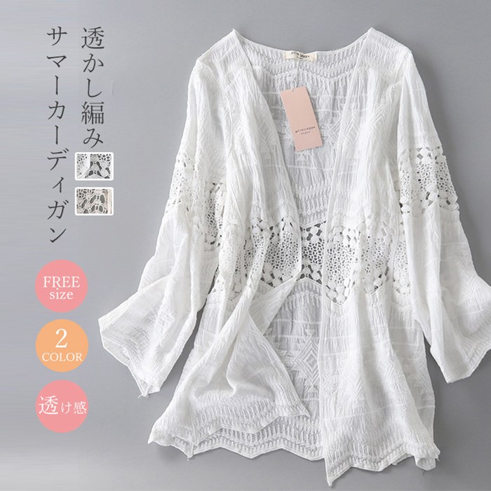 カーディガン サマー カーディガン レディース 夏 アウター 春 涼やか 透かし編み 細魅せ 美人レディースファッション トップス カーディガン ボレロ