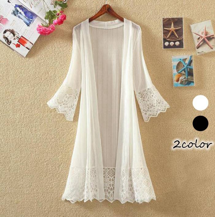 レースカーディガン 日焼け止め服 カーディガン ラッシュガード 透け感 レディース スピーカースリーブ 透かし雕り レース 長袖 ロングカーディガン 薄手 着痩せ 肩掛け 夏 春