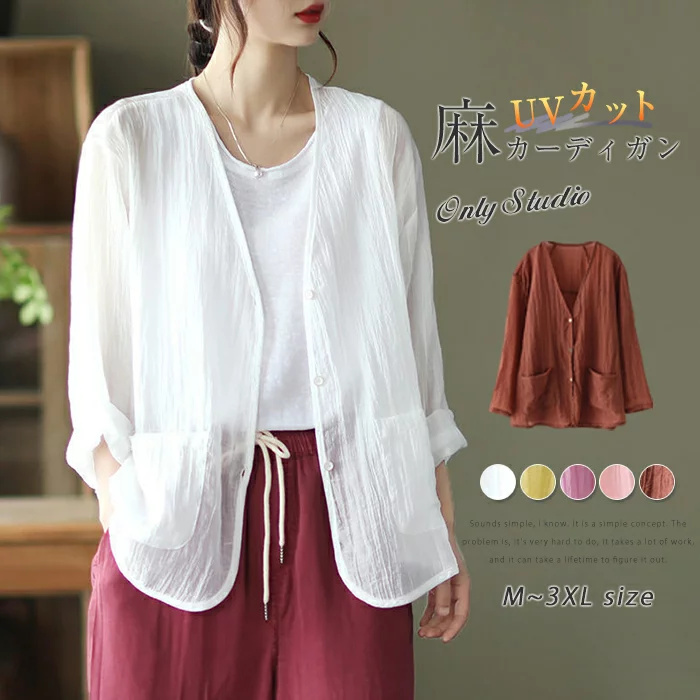 リネン カーディガン 長袖 パーカー レディース 薄手 春夏 サマーカーディガン UVレディースファッション トップス カーディガン ボレロ