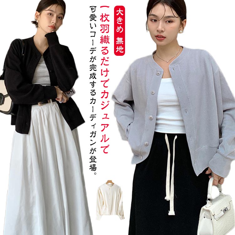 カーディガン レディース スウェットカーデ 長袖 クルーネック トップス トレーナレディースファッション トップス カーディガン ボレロ