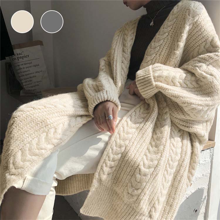 カーディガン レディース 秋冬 ロングニット ニットカーディガン レディース ワンサイズ 体型カバー ケーブル編み ゆったり ミディアム丈 おしゃれ ネック