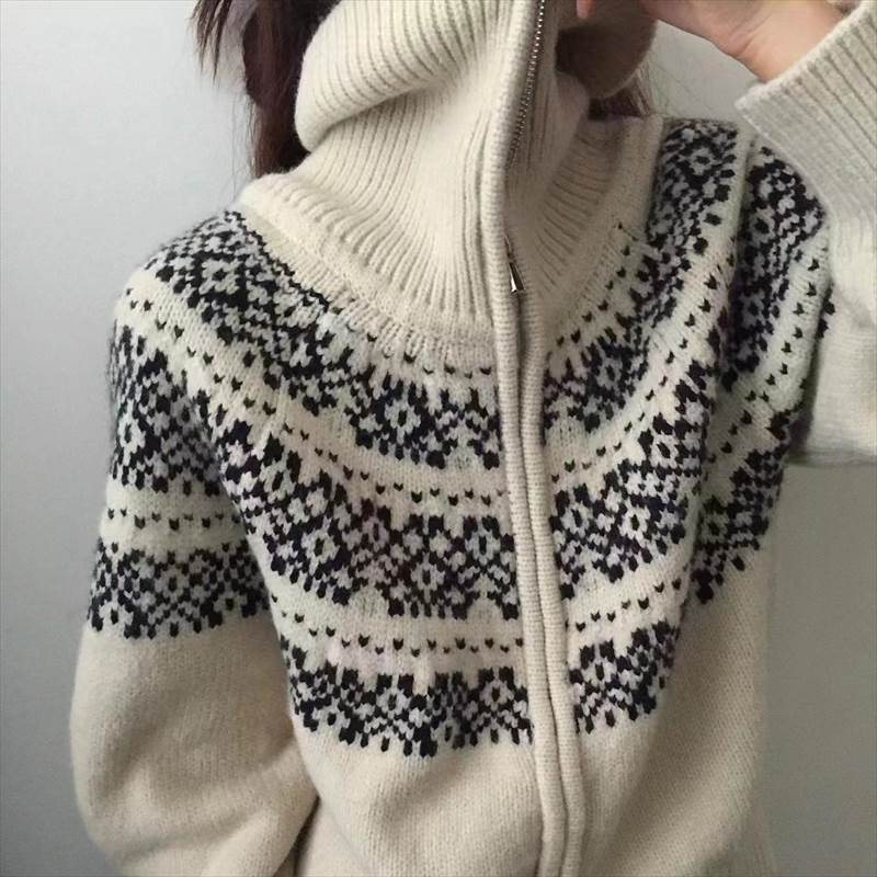 トップス カーディガン レディース 長袖 ハイネック 前開き ダブルジップ ミディアム丈 ジャガードニット かわいい 大人可愛い きれいめ シンプル 上品 おしゃれ かっこいい カジュアル
