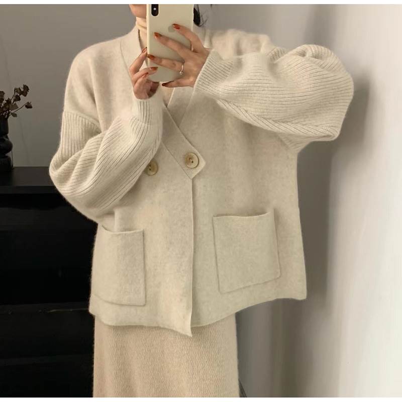 トップス カーディガン レディース 長袖 Vネック 前開き ダブルボタン ショート丈 ポケット かわいい 大人可愛い きれいめ シンプル 上品 おしゃれ かっこいい カジュアル こなれ感