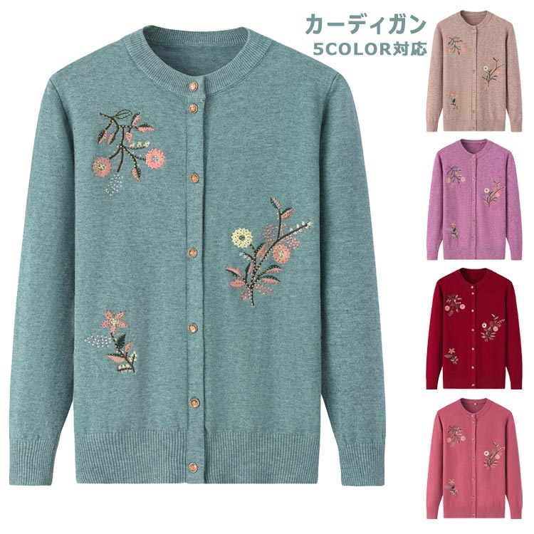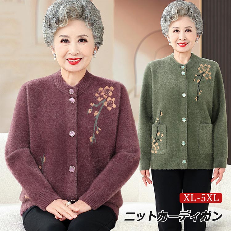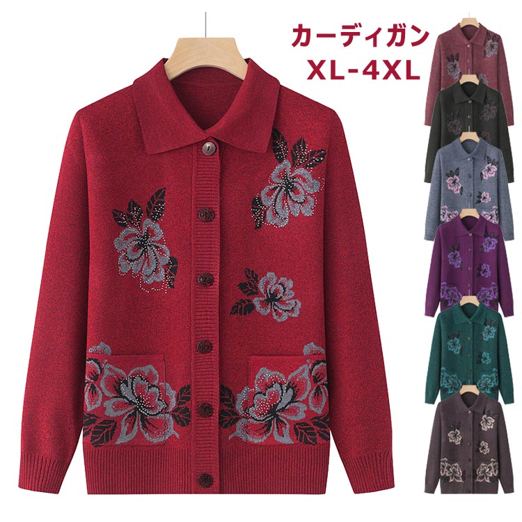 ニット カーディガン レディース シニアファッション 秋 春 アウトドア 花柄 普段着 おばあちゃん 祖母 お年寄り お誕生日 プレゼント ギフト