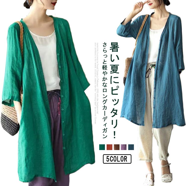 カーディガン 夏 リネン風 ロング丈 カーディガン 羽織り 涼しい コンパクトレディースファッション トップス カーディガン ボレロ