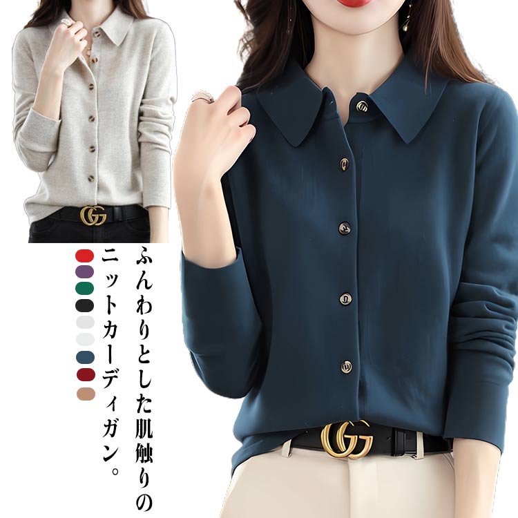 ニットカーディガン 暖かい 長袖 トップス ニット シャツ セーター 襟付き コーデ 秋服 大人 カジュアル コーデ 通勤 20代 30代 ニットセーター