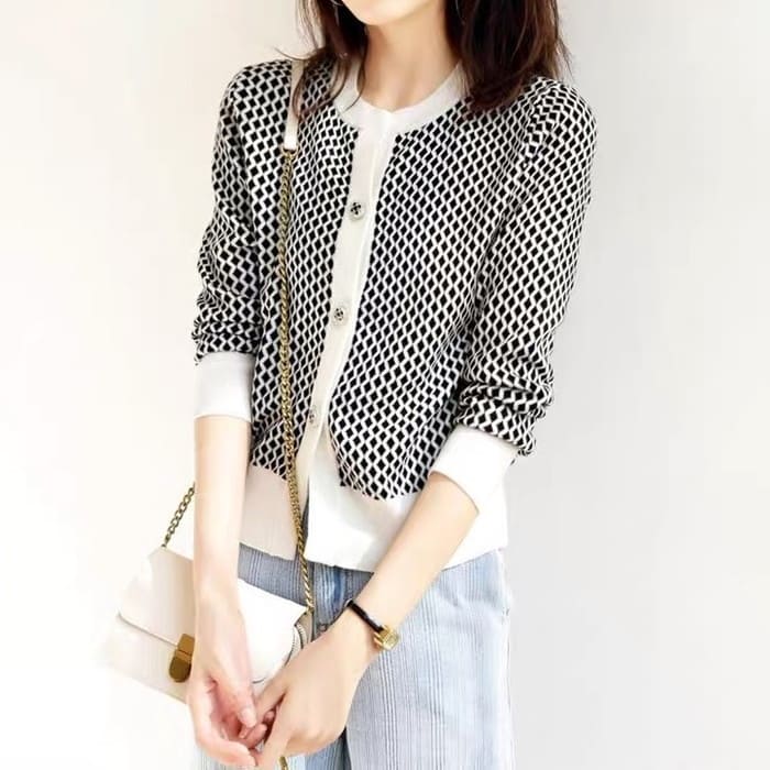 ニット カーディガン レディース 幾何学 春秋冬 長袖 トップス きれいめ カジュアル 通勤 旅行 女子会 お出かけ 母の日 プレゼント 30代 40代 50代 60代 シニア オシャレ 17683