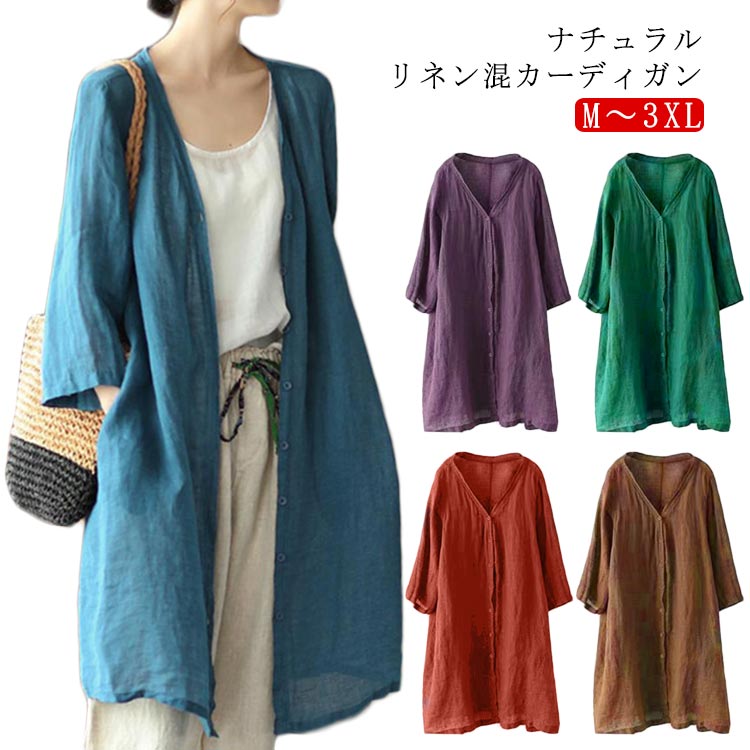 カーディガン 秋 カーディガン レディース ゆったり リネン混カーディガン 夏 春夏 羽織 レディース ロング 薄手 ベルスリーブ 涼しい 冷房対策 春 ゆったり 七分袖 ロング丈 羽織り