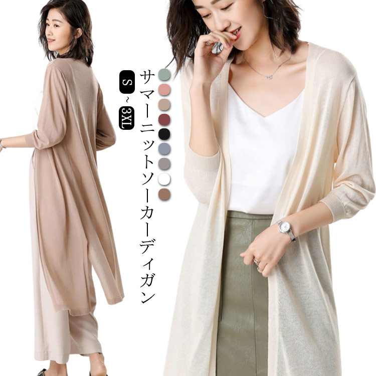 スリット シアーサマーニットソーカーディガン レディース ミディアム丈 ロング丈 羽織り 涼しい 春 夏 体型カバー 春服 夏服 ロング丈 コンパクト 大きいサイズ