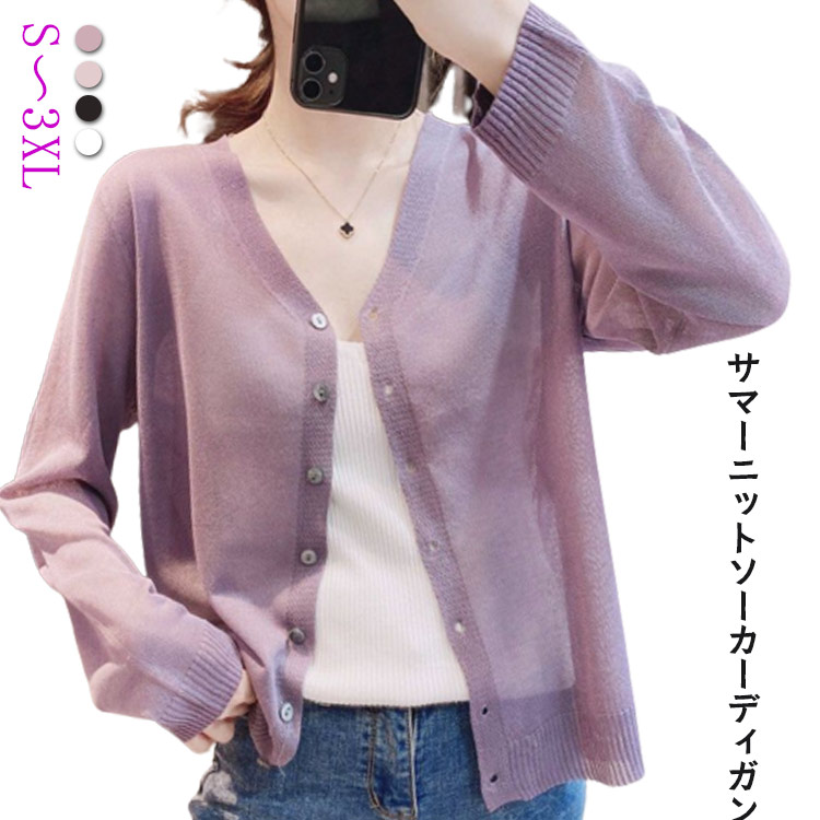 春 羽織り 涼しい 冷房対策 レディース 夏 春服 夏服 大きいサイズ コンパクト シアーサマーニットソーカーディガン