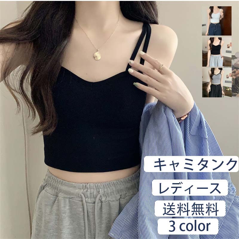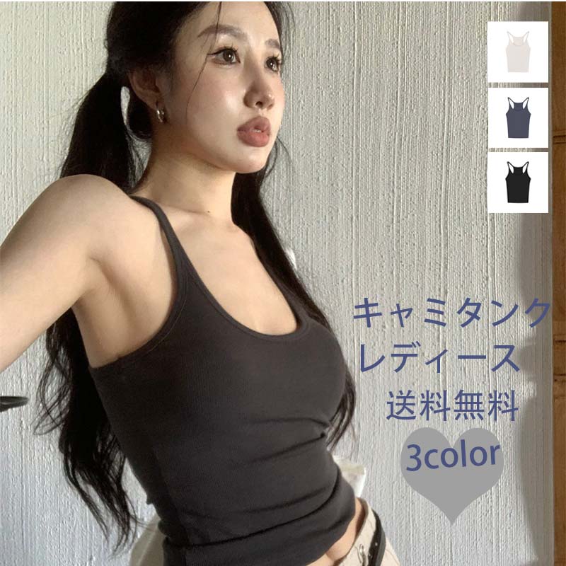 キャミタンク レディース 無地 ノースリーブ トップス キャミソール ホワイト ブラック グレーレディースファッション トップス タンクトップ